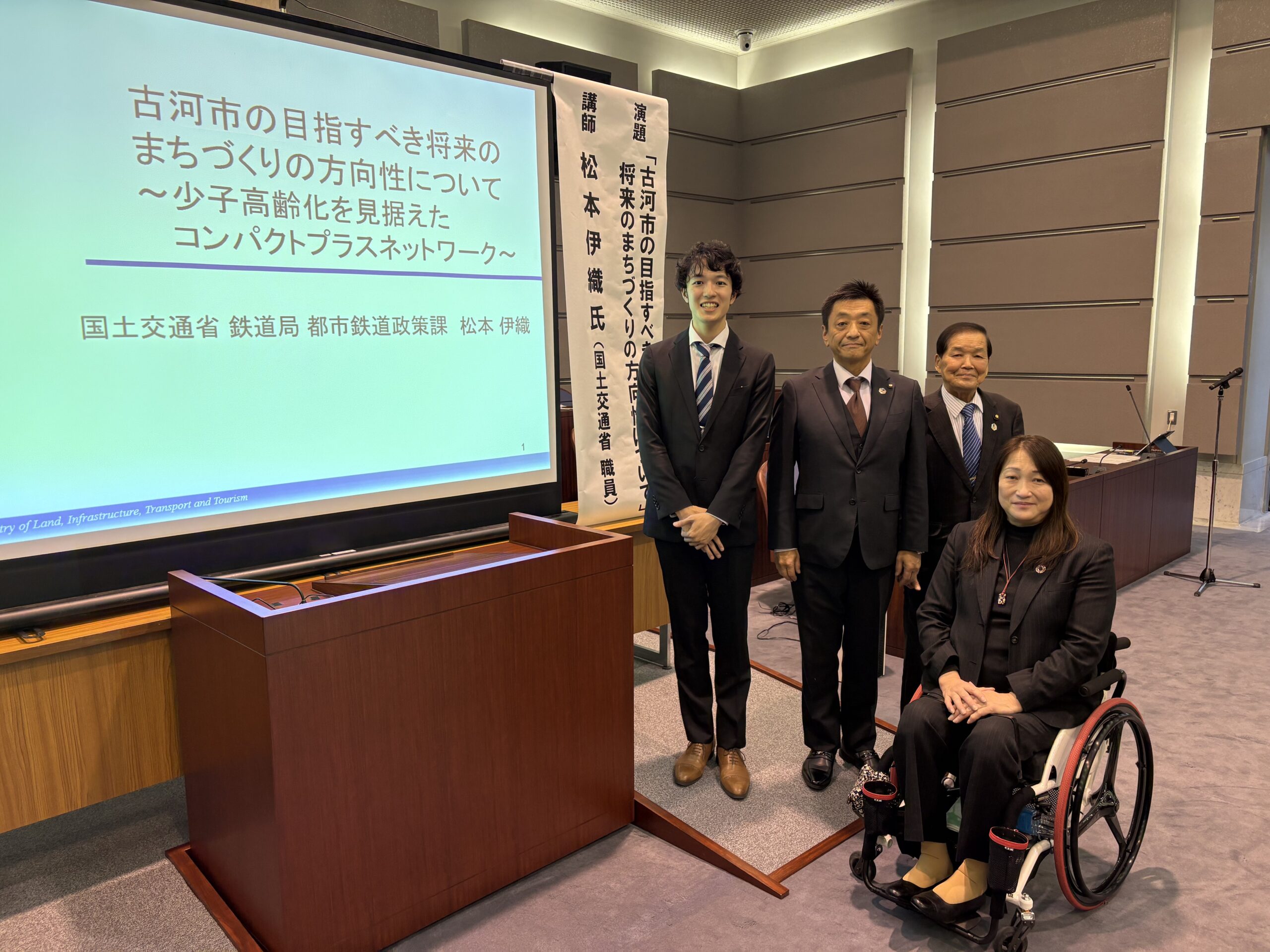 演題は「古河市の目指すべき将来のまちづくりの方向性について~少子高齢化を見据えたコンパクトプラスネットワーク~」でした。